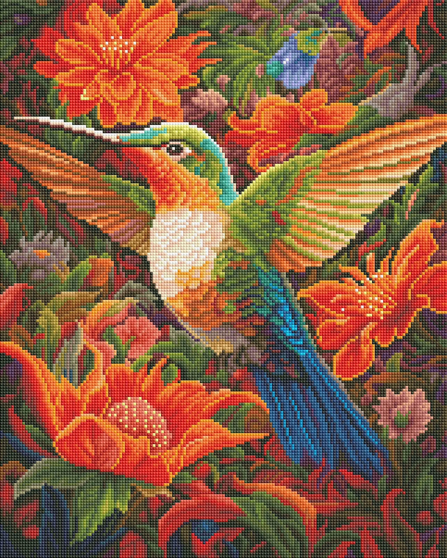 Diamond Painting Vogel - Kolibri mit Blumen - Tiere - Vollständig Abdeckend